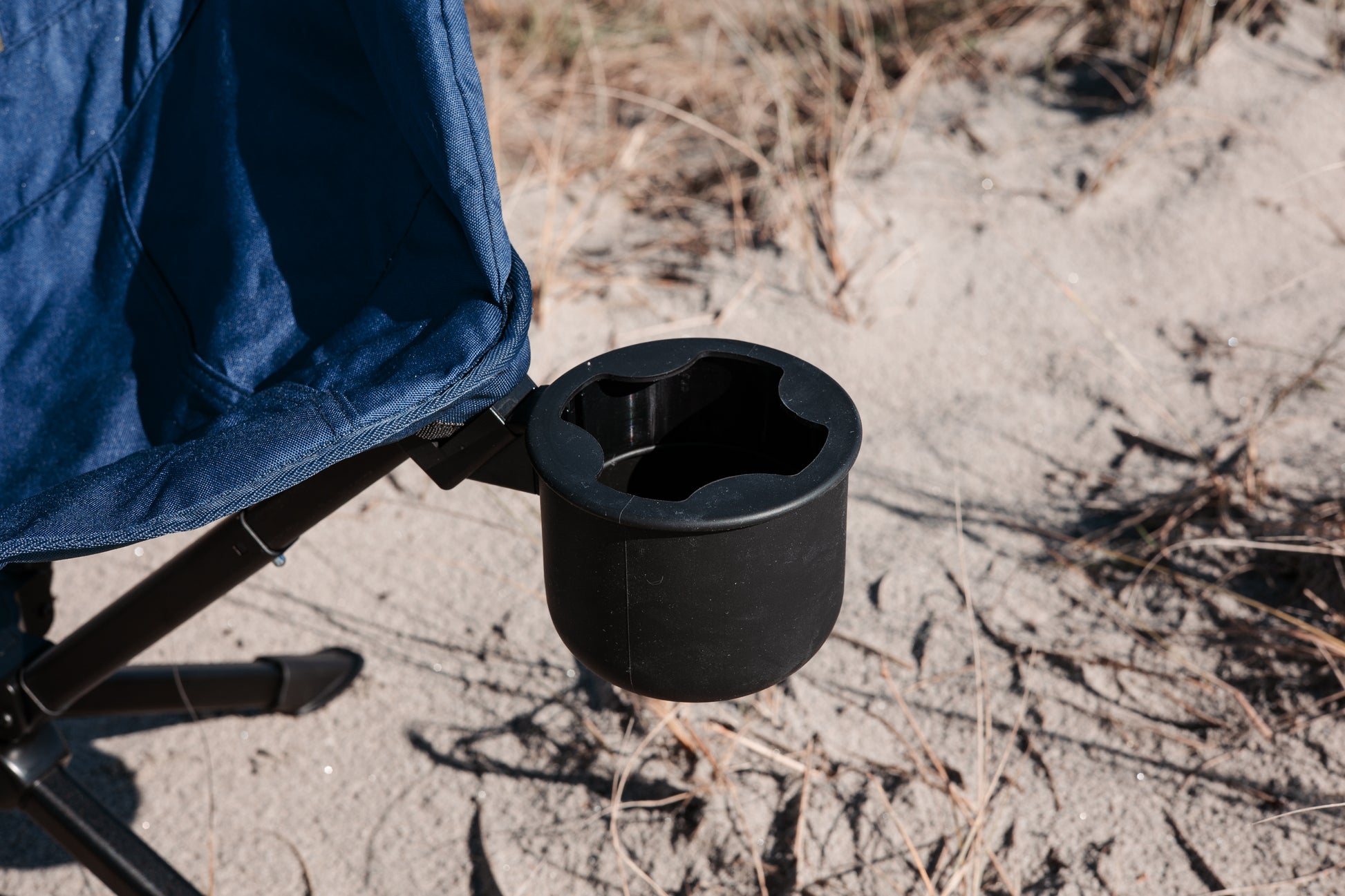 The detachable cup holder fits just about any drink, whether it’s a can, a stubby, or even a stemmed wine glass. A side pocket adds a handy spot to stash your phone, torch, or snacks.